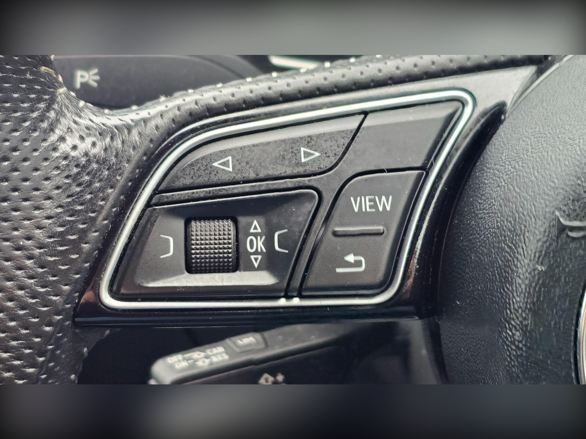- S Line 3-Spoke Leather Multi-function Sport Steering Wheel - Grips in Perforated Leather