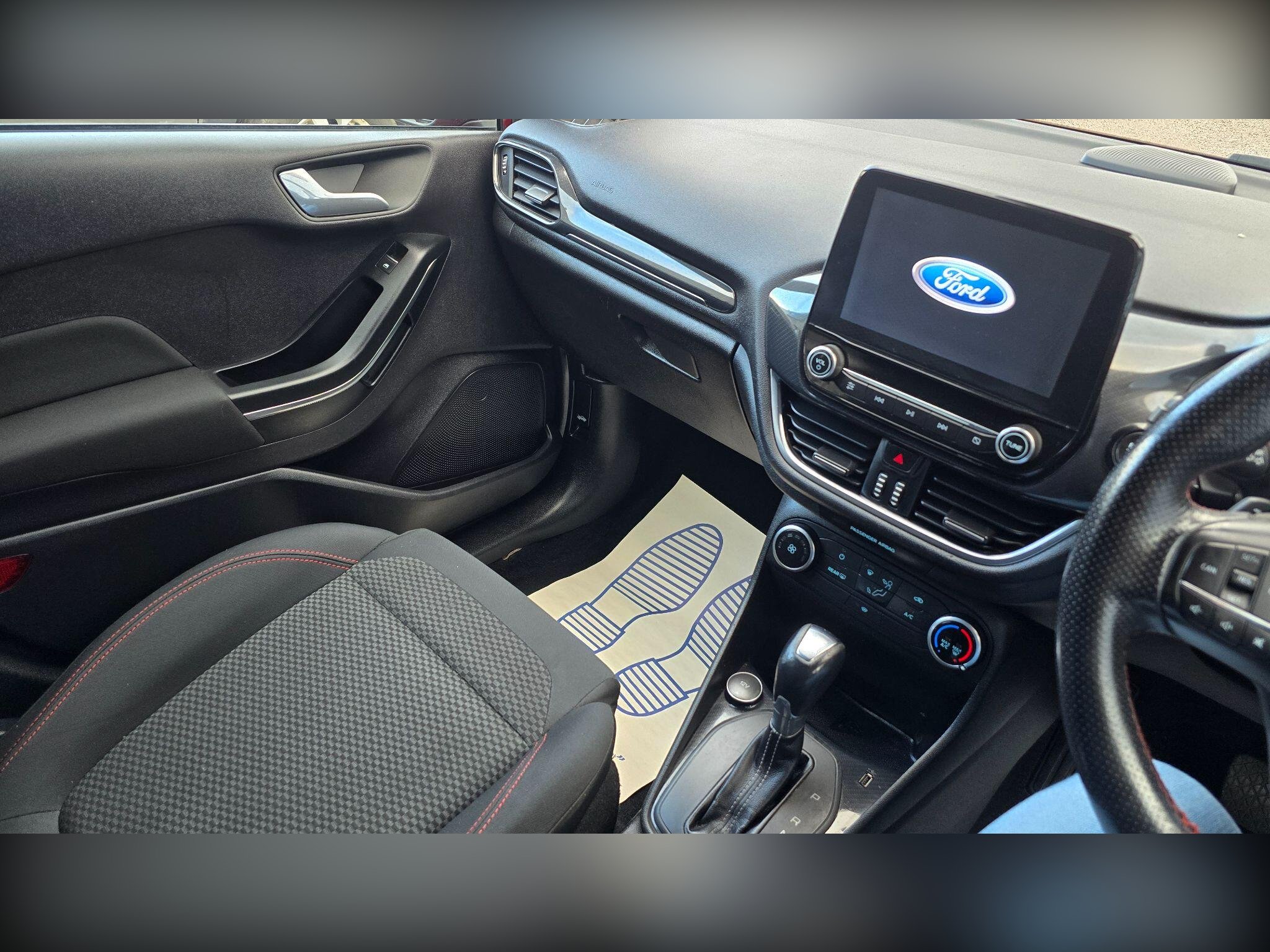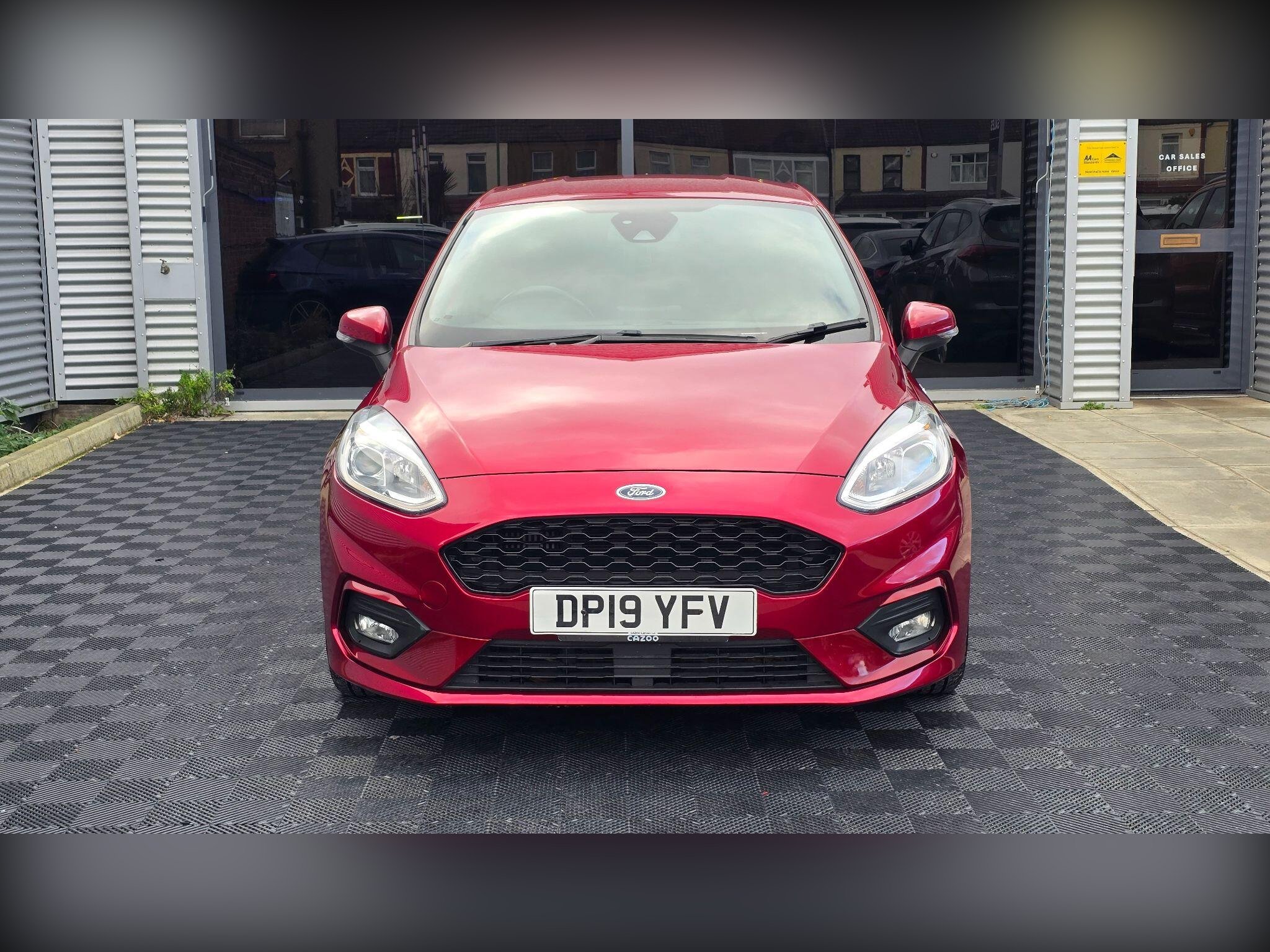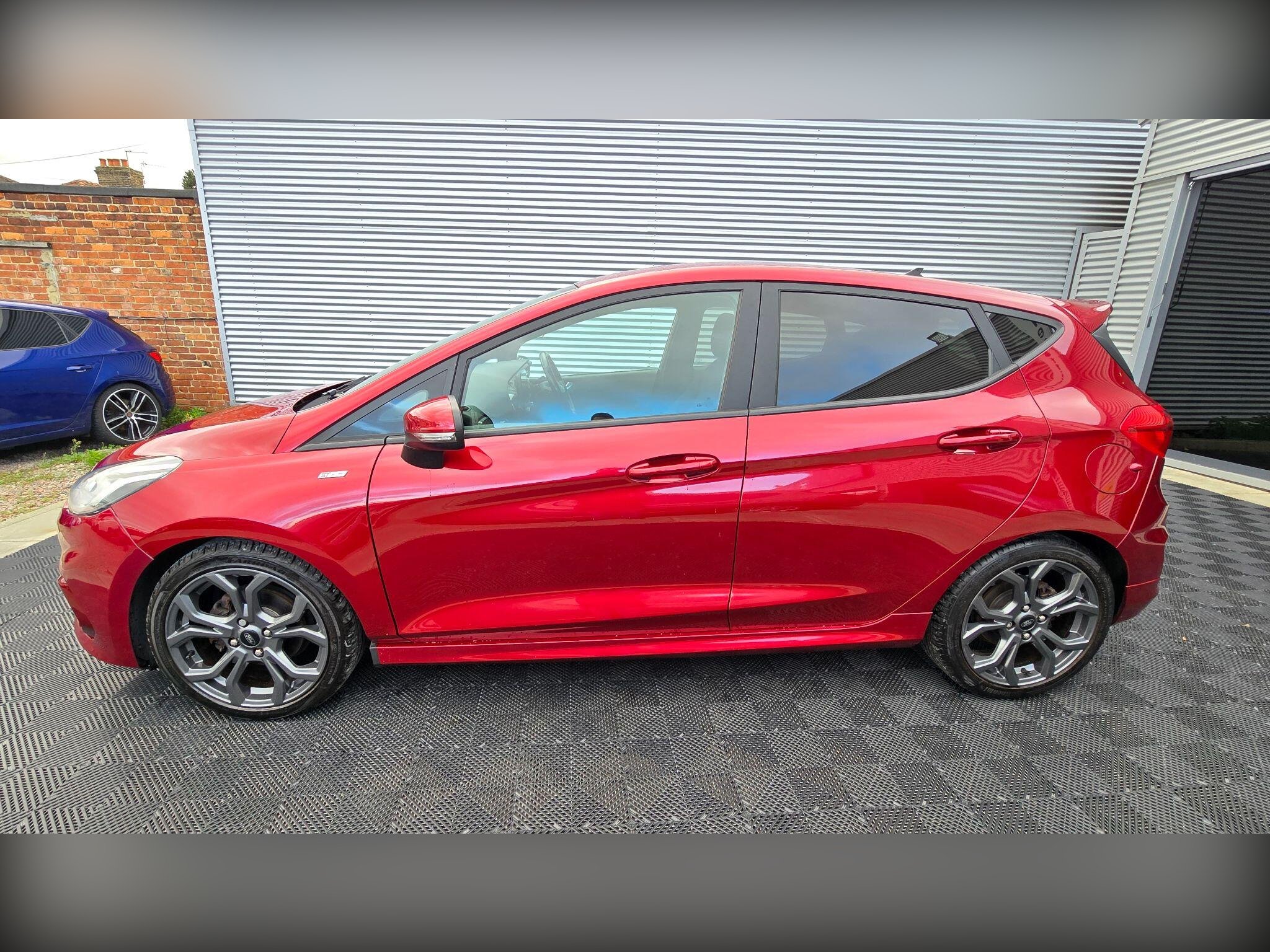 Discover this 2019 Ford Fiesta T ST Line, a stylish and well equipped hatchback that is ready for its next adventure. This particular model boasts a 1.0L petrol engine and meets Euro 6 emissions standards, making it an efficient choice. It comes with a Ford Navigation System featuring Ford SYNC 3, offering seamless integration with Apple CarPlay and Android Auto. You'll also benefit from FordPass Connect, an embedded modem that includes Bluetooth connectivity. Adding to its sporty appeal are the 18 inch ST Line 5 spoke alloy wheels in Rock Metallic with a machined finish, and a striking Race Red contrast roof and mirrors.
