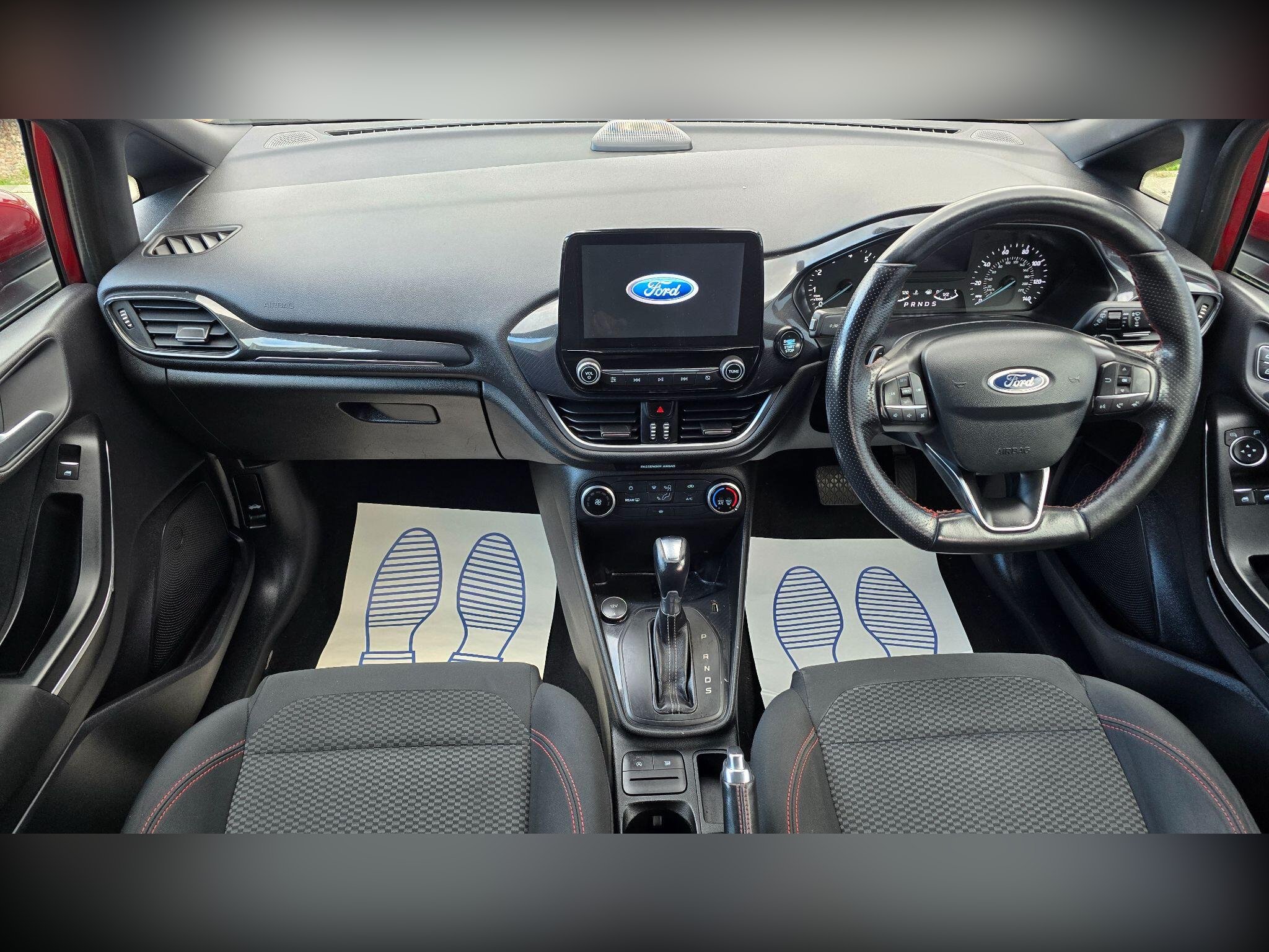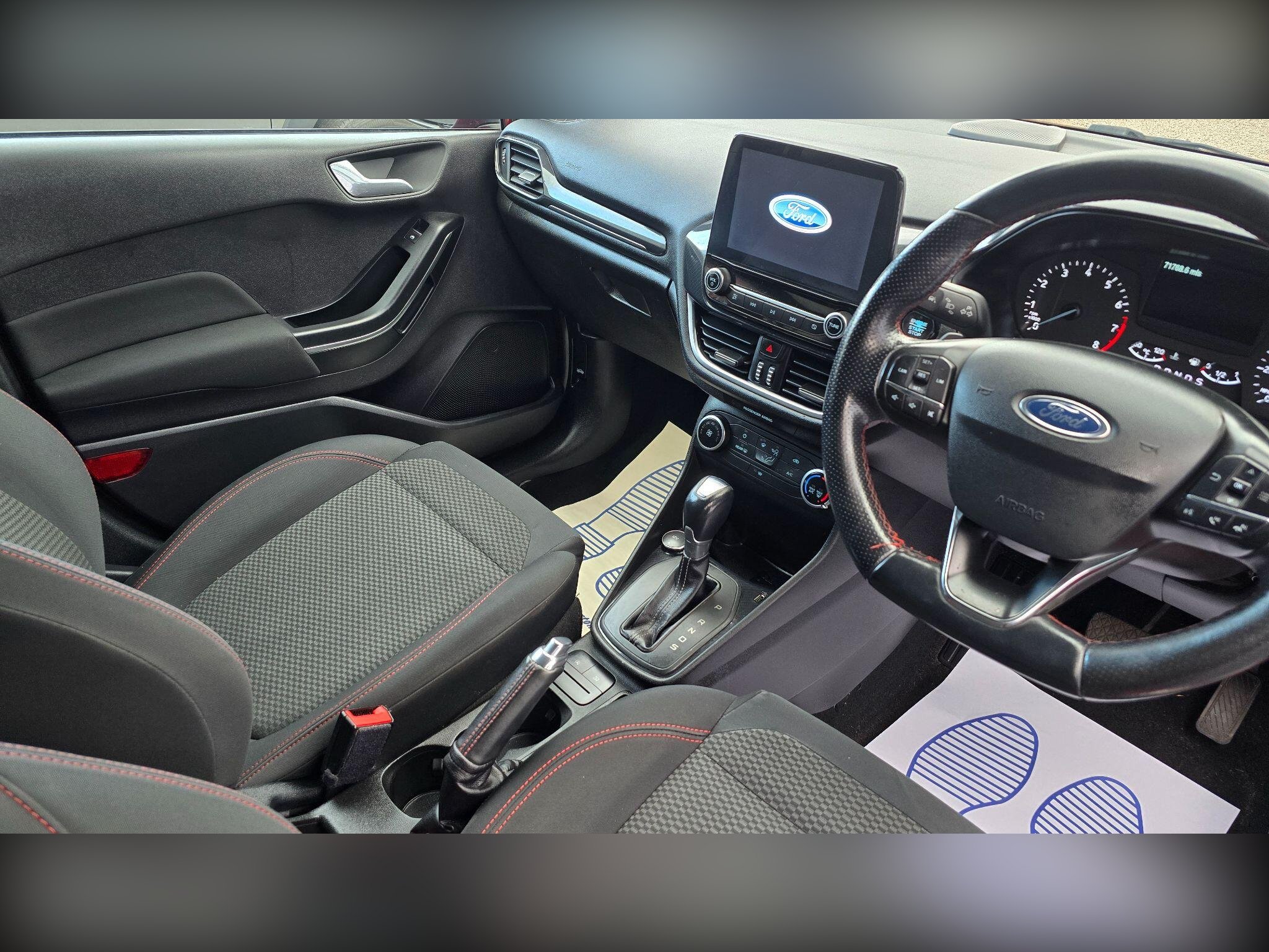 This 2019 Ford Fiesta T ST Line offers a superb blend of sporty styling and everyday practicality. Powered by an efficient 1.0 litre petrol engine and meeting Euro 6 emissions standards, this model is designed for modern driving. Inside, you'll find the convenient Ford SYNC system featuring a touchscreen, DAB radio, and seamless integration with Apple CarPlay and Android Auto, allowing you to connect your smartphone effortlessly. Manual air conditioning ensures a comfortable cabin temperature, while the NCAP Pack, including automatic headlights, enhances both safety and convenience.