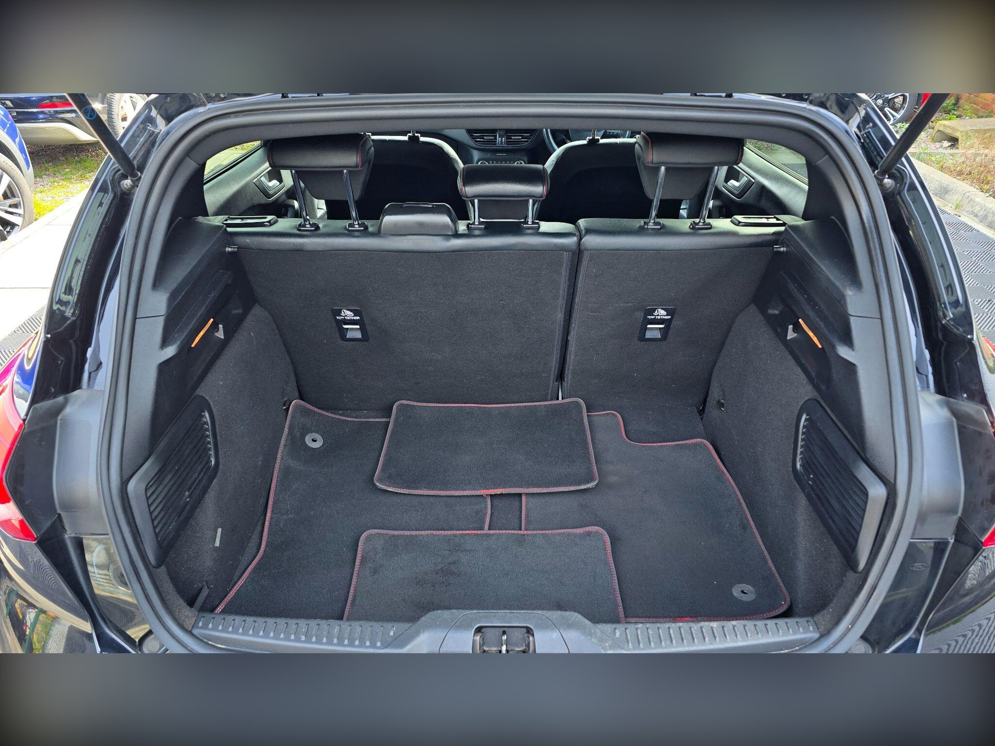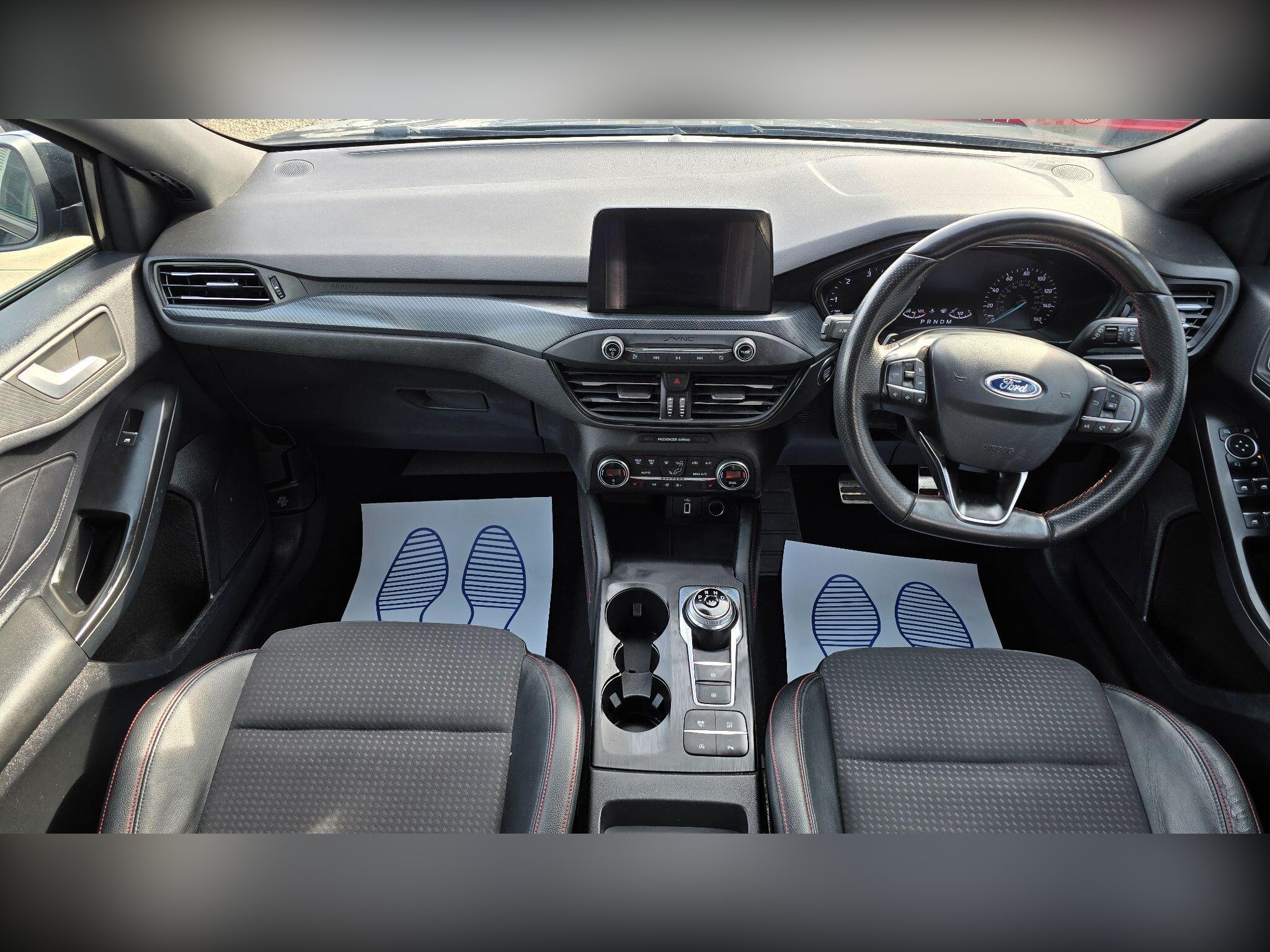 - Front and Rear Floor Mats with Red Stitching