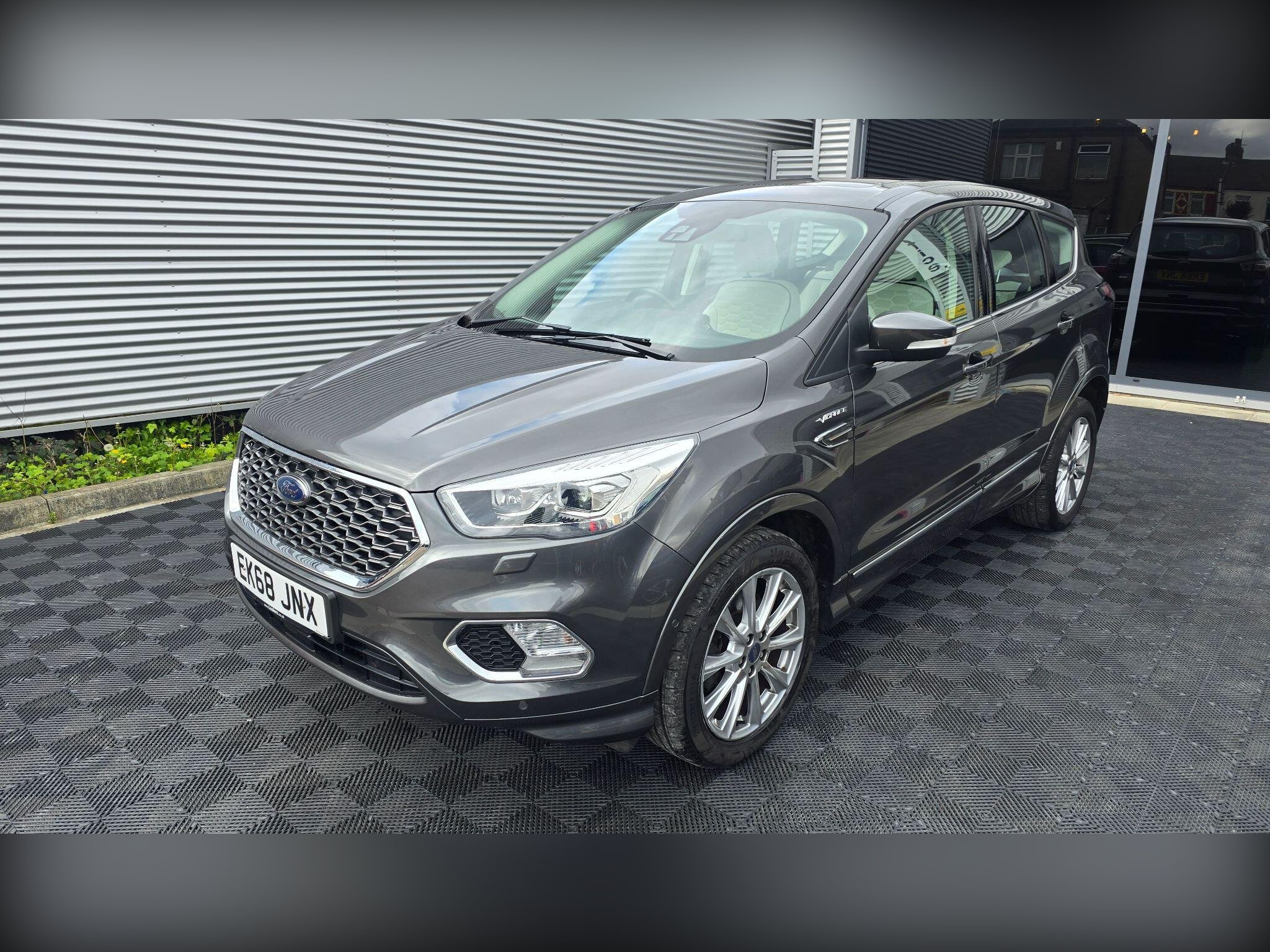 This 2018 Ford Kuga T Vignale presents a remarkable opportunity with its exceptionally low mileage of just 38,564 miles. This Euro 6 compliant, four wheel drive model boasts a 1.5 litre petrol engine and is finished in the premium Vignale trim. It comes equipped with a power opening panoramic roof, offering an expansive view, and heated front seats for enhanced comfort.