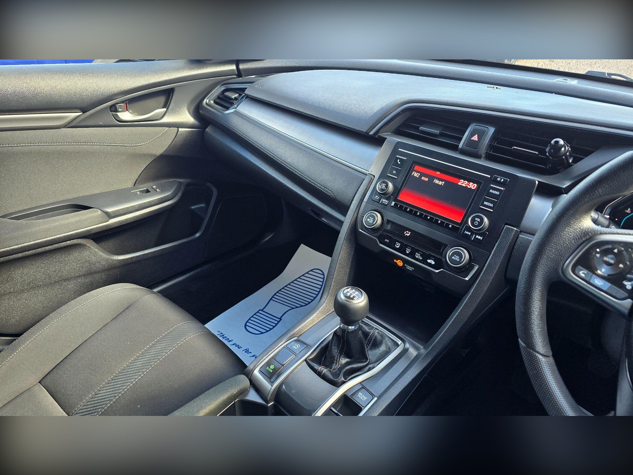 This 2017 Honda Civic VTEC Turbo SE offers an impressive 59 miles per gallon, making it a highly economical choice. This Euro 6 compliant model features a 1.0 litre petrol engine and comes equipped with front and rear parking sensors, including parking assistance for both. The headlights are designed with a dusk sensor, meaning they will automatically turn on when light levels drop. For added convenience, this Civic includes adaptive cruise control, allowing for relaxed journeys, and Bluetooth hands free telephone connectivity. Inside, you will find climate control with automatic air conditioning to ensure a comfortable cabin temperature.