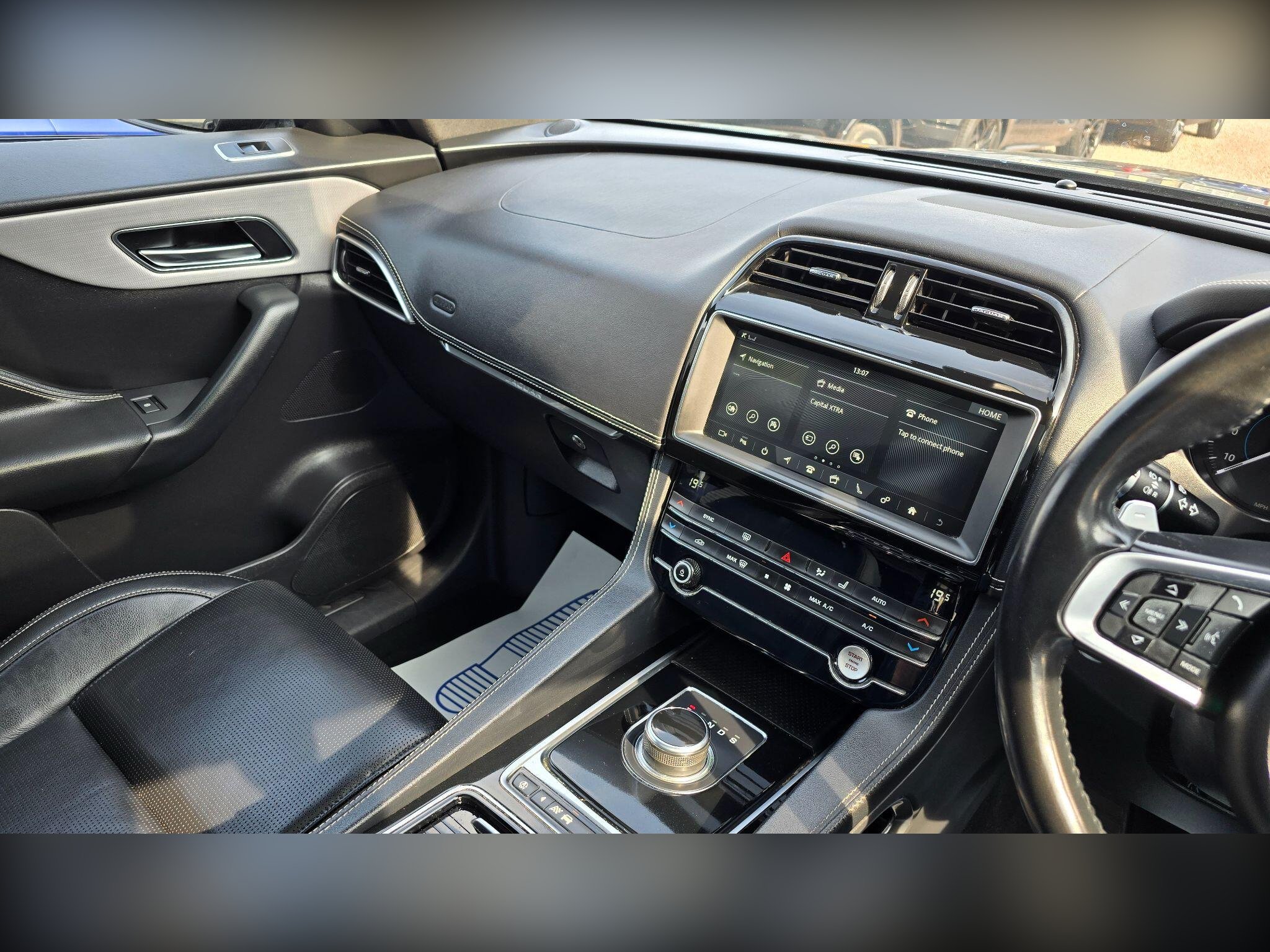 This 2019 Jaguar F PACE D180 R-Sport is a superb example, having been cherished by just one owner since new. This striking four wheel drive SUV boasts a powerful yet efficient 2.0 litre Euro 6 diesel engine, offering a compelling blend of performance and economy. The R-Sport trim level enhances its already impressive presence, while the fixed panoramic roof with its integrated sunroof floods the cabin with natural light. Driving is made easier and more comfortable with Xenon headlights featuring a distinctive LED signature, Bluetooth connectivity for seamless device integration, and 2-zone climate control to keep everyone comfortable. Furthermore, front and rear parking aids provide confidence when manoeuvring.